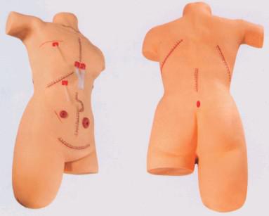 外科缝合包扎展示模型的描述: 功能特点:提供14个标准手术切口,可以用于练习和提高各种伤口的护理、清洗、换药、包扎等基本技术。 切口包括:■ 甲状腺切除术■ 胸骨切开术■ 腺切除术■ 胆囊切除术■ 腹部探察术■ 阑尾切除术■ 结肠造口术■ 回肠造口术■ 腹式子宫切除术■ 开胸术■ 肾切除术■ 椎板切开术■ 二期褥疮■ 截肢术